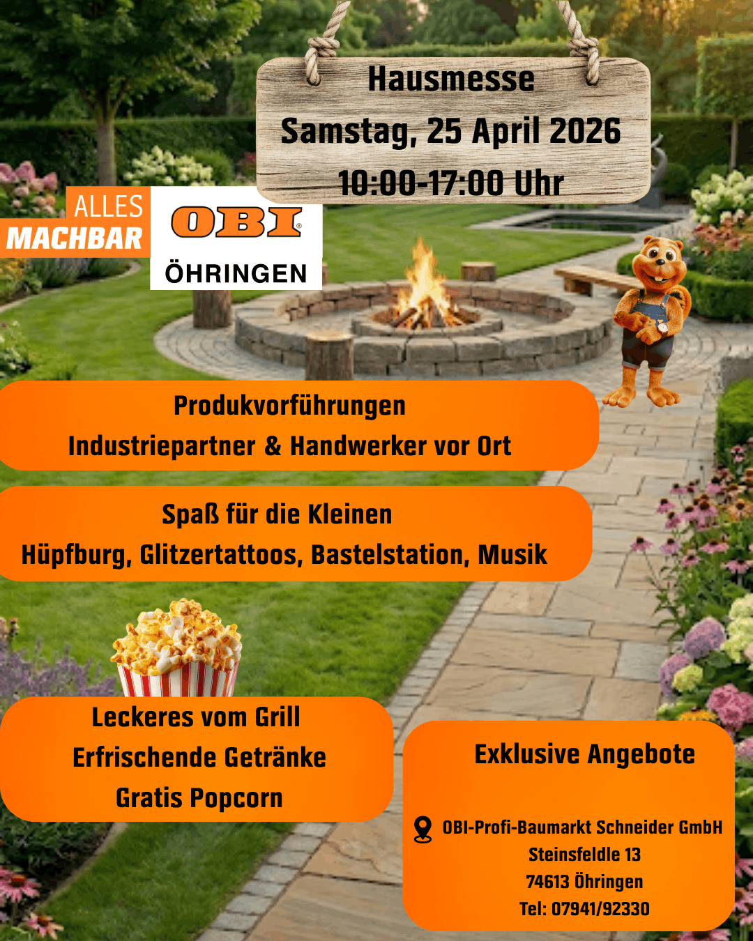 Hausmesse OBI Öhringen 10:00 - 17:00 Uhr